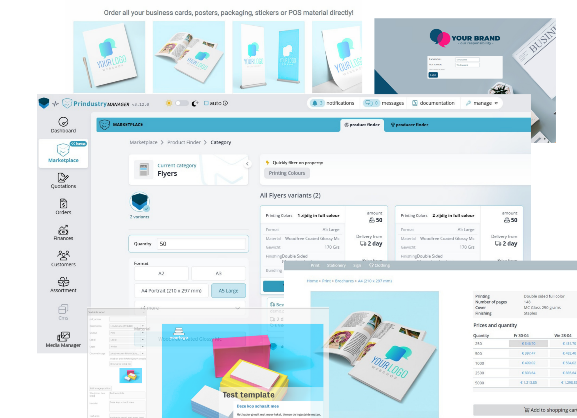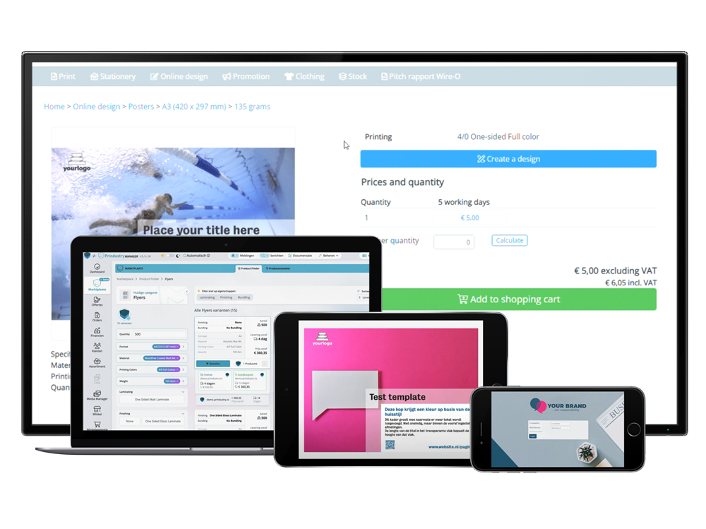 Easily purchase and sell all your communication products within one system. Managing, editing, and ordering is simple — whether you use a webshop, brand portal, or customer portal. At the core lies a powerful management system with scalable modules: from invoicing to file management.
