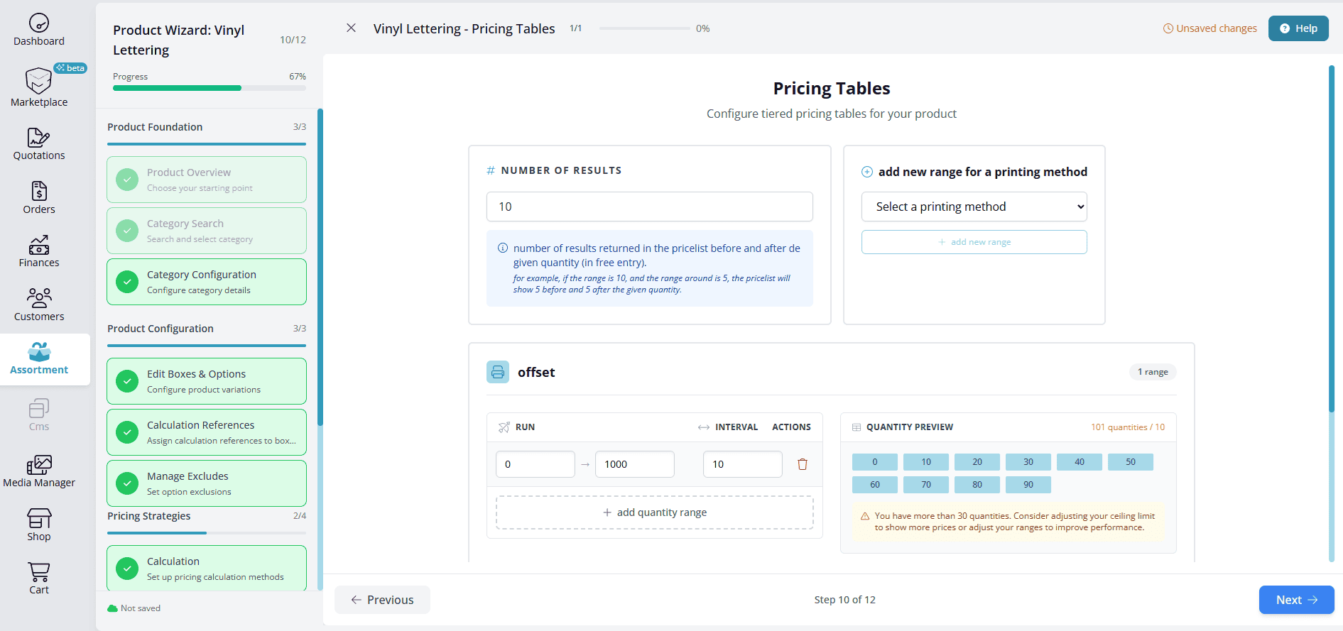 Product Wizard Assortment Management Pricing tables