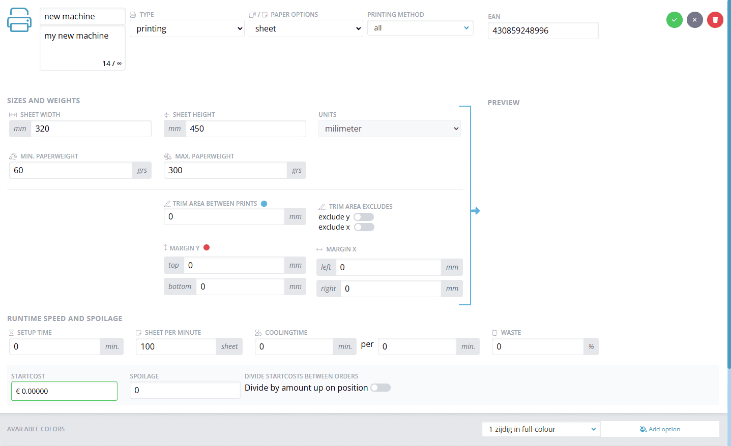 The calculator is fully tailored to your production setup. Enter your machine details and cost components once – such as: